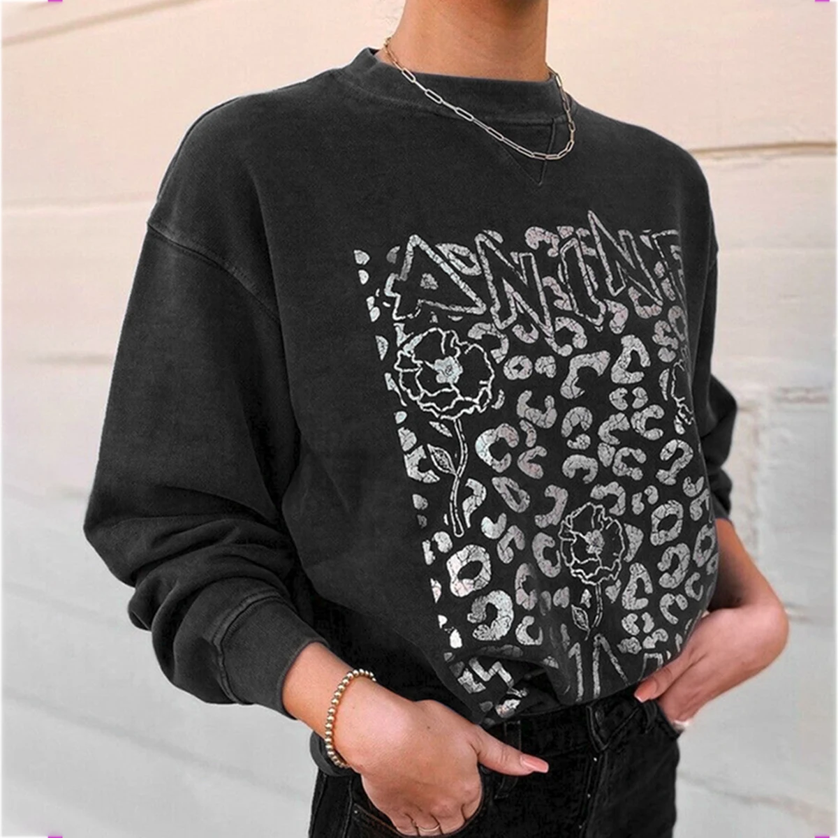Name: Thick Hoodie O-Neck Pullover Tops Long-Sleeve Leopard Vintage Autumn Winter Women Full-Cotton