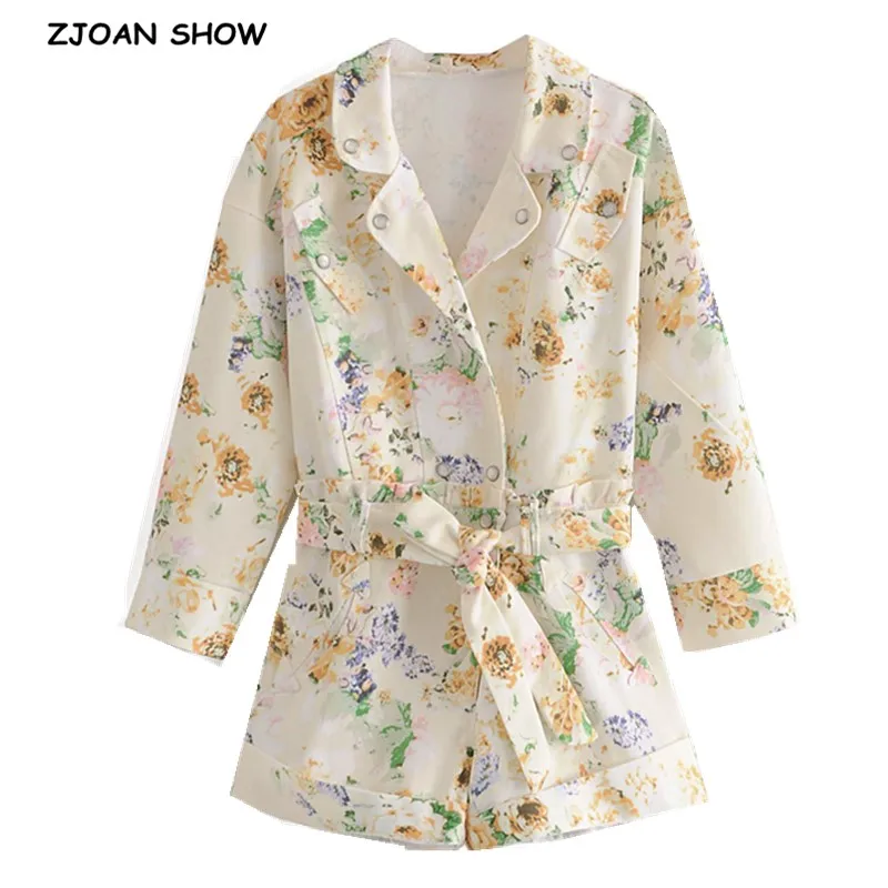 Name: Jumpsuit Romper Short-Pants Flower-Print Bow-Waist Long-Sleeve White V-Neck Tie Autumn