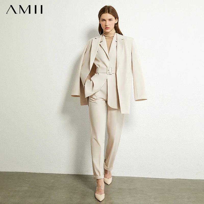 Best Suits & Sets from Amii Official Store for Pants Suit Blazer Solid-Vest Office Minimalism AMII Women's Autumn And Lapel Coat 12070325