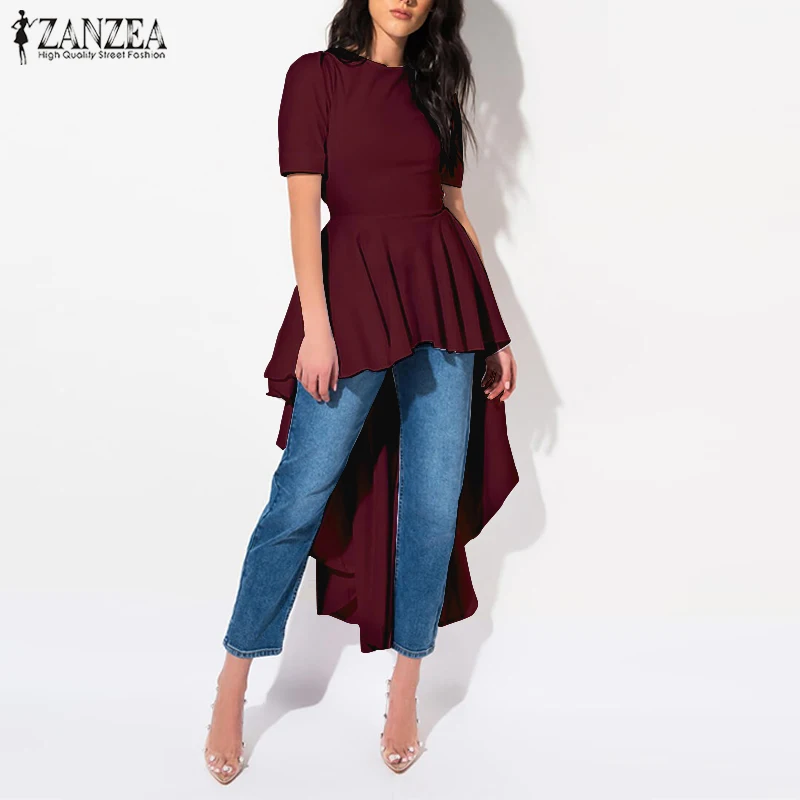 Best Blouses & Shirts from Lanlins Apparel Store for Asymmetrical Blouse Short-Sleeve Low-Shirt Long-Tops ZANZEA Fashion Women Summer High